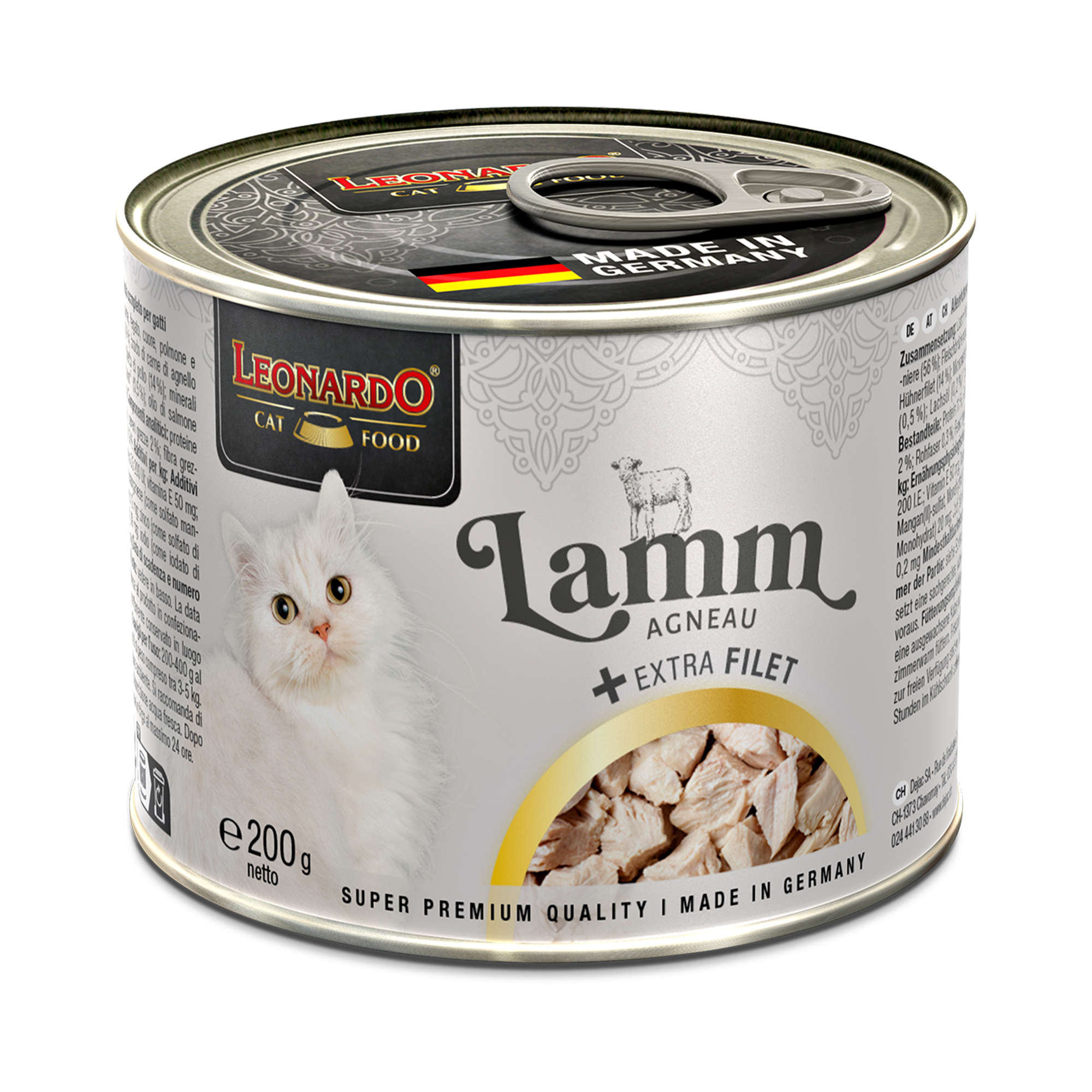 Carnea de miel gustoasa este imbogatita cu bucati delicioase suplimentare de file. Gatita cu atentie in suc propriu, carnea devine un ospat irezistibil. Uleiul de somon da retetei gustul final si furnizeaza acizi grasi pentru o blana matasoasa deosebita. Desigur, pregatit fara zahar sau coloranti artificiali, potentiatori de aroma sau conservanti.